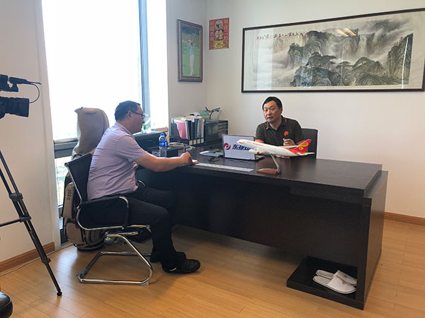 August 5, 2018,The media reporter came to our company for a field interview.Chairman of ∏the company Fan Bing in recent years,The company introdu↔ced the business situation of international air logistics and transportation.And on the impact of the Sino-US trade war on our business,Answered the reporter's question.
